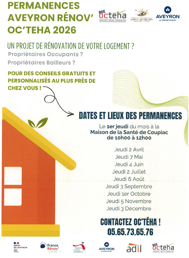 Profitez des permanences d’oc’teha, Monsieur Tony VERDELHAN vous accueillera au local partagé de la maison de santé afin de répondre à toutes vos questions sur l’habitat.